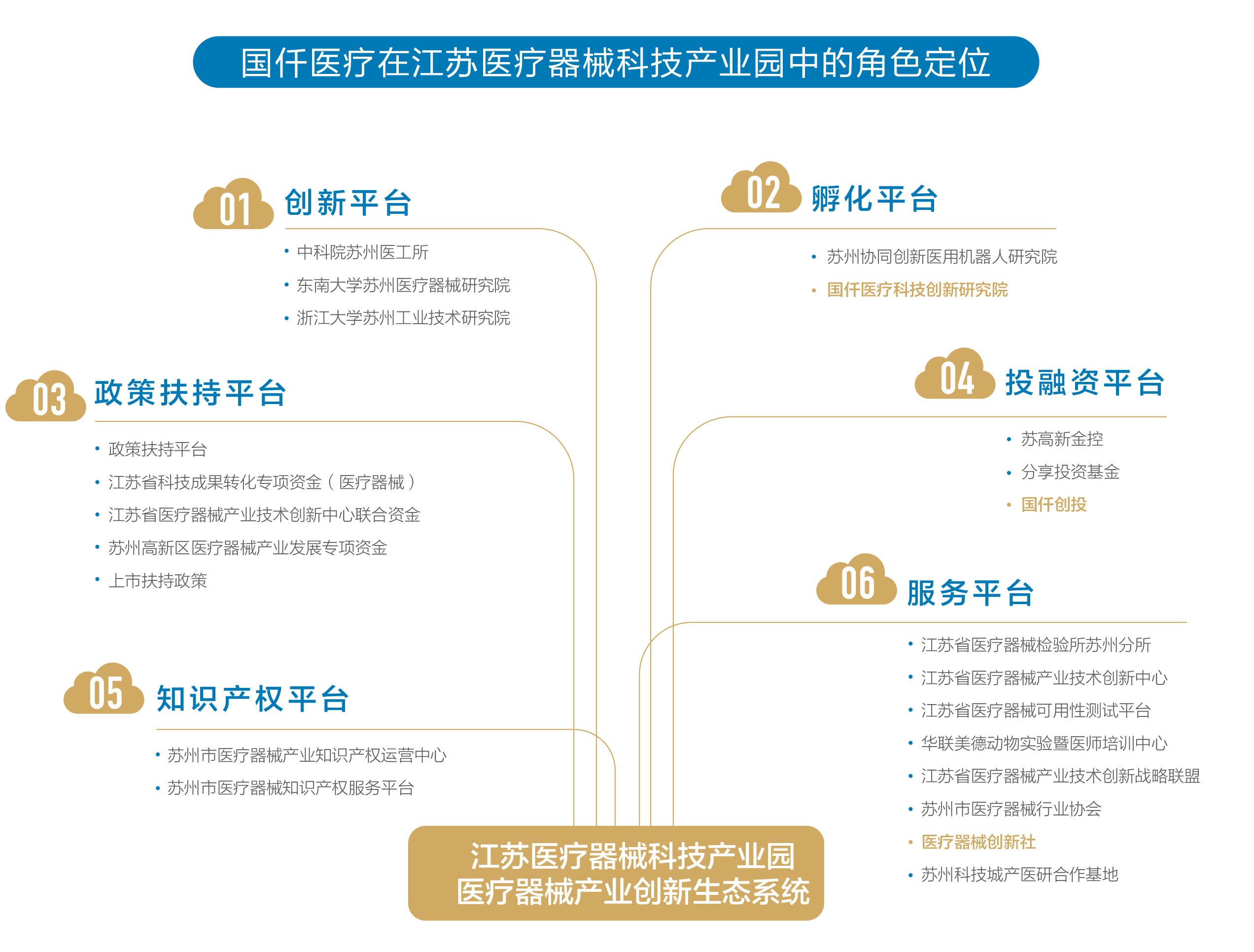 ![]() | 江蘇醫(yī)療器械科技產(chǎn)業(yè)園 ??獲批國家火炬計劃醫(yī)療器械特色產(chǎn)業(yè)基地,位于蘇州高新區(qū)科技城內(nèi),由蘇高新集團(tuán)、蘇州科技城管委會和蘇州留學(xué)人員創(chuàng)業(yè)園于2009年投資建設(shè)??傄?guī)劃占地約2平方公里,載體面積46萬平方米,分為南部科研創(chuàng)新區(qū)、權(quán)威檢測和評估機(jī)構(gòu)區(qū)、綜合配套區(qū)以及北部醫(yī)療器械加速器,十年來,產(chǎn)業(yè)園一直處于>高速發(fā)展中,截止2018年已有包括魚躍醫(yī)療,中生北控,恒瑞醫(yī)療,樂普醫(yī)療,美康生物等上市公司,以及瑞思邁、摩根新材料、卡瓦科爾、富士影像、賽默飛世爾等國際公司在內(nèi)的200多家企業(yè)聚集,產(chǎn)品涵蓋醫(yī)學(xué)影像、生物醫(yī)用材料、體外診斷、醫(yī)用機(jī)器人等眾多領(lǐng)域。 |