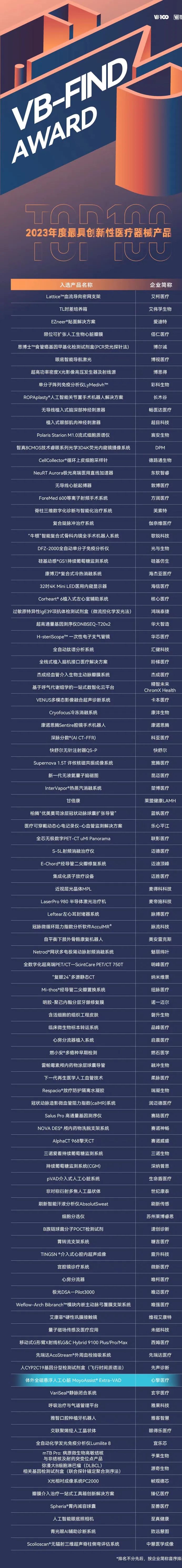 為發(fā)現(xiàn)具有技術(shù)先進(jìn)性、滿足醫(yī)學(xué)臨床需求、行業(yè)示范效果突出的醫(yī)療健康創(chuàng)新產(chǎn)品(解決方案),動(dòng)脈網(wǎng)VB100于2022年推出了面向醫(yī)療健康產(chǎn)業(yè)創(chuàng)新產(chǎn)品(解決方案)的年度品牌評(píng)選活動(dòng)——VB-Find Award,“Find”寓意生命健康領(lǐng)域發(fā)現(xiàn)與探索的歷程,也指代被發(fā)現(xiàn)的改變現(xiàn)代醫(yī)療的創(chuàng)新產(chǎn)品。動(dòng)脈網(wǎng)VB100希望通過VB-Find Award評(píng)選,打造醫(yī)療健康前沿研究及應(yīng)用成果展示平臺(tái),賦能醫(yī)療健康企業(yè)品牌成長(zhǎng),同時(shí)深入剖析我國(guó)醫(yī)療健康行業(yè)發(fā)展現(xiàn)狀,探索未來醫(yī)療創(chuàng)新范式。