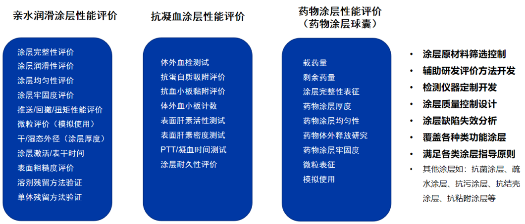 深究涂層百因,百因特面向客戶(hù)提供科學(xué)全面的涂層“診斷”服務(wù)。針對(duì)各類(lèi)功能涂層有效性和安全性,如親水潤(rùn)滑涂層的完整性、潤(rùn)滑性、牢固度和涂層厚度,藥物涂層的均勻性、微粒表征和模擬使用,抗凝血涂層的抗凝有效性、耐久性等提供專(zhuān)業(yè)的評(píng)價(jià)方法開(kāi)發(fā)與高端非標(biāo)檢測(cè)服務(wù)。