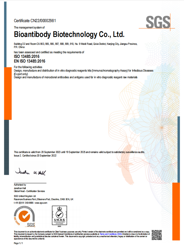 ISO 13485國際醫(yī)療器械質(zhì)量管理體系由ISO國際標準組織進行制定,代表了醫(yī)療器械行業(yè)質(zhì)量管理體系的前沿水平,是優(yōu)質(zhì)醫(yī)療產(chǎn)品的核心指標。我司此次獲得該認證,標志著佰抗生物在體外診斷領(lǐng)域已經(jīng)具備持續(xù)生產(chǎn)、提供高品質(zhì)醫(yī)療產(chǎn)品的能力,并且代表佰抗生物研效管理體系保持著標準化、規(guī)范化、國際化的高水平。