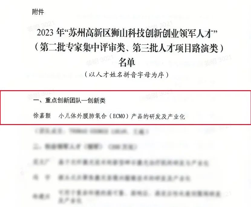 2023年蘇州高新區(qū)獅山科技創(chuàng)新創(chuàng)業(yè)領(lǐng)軍人才(第二批專家集中評審類、第三批人才項(xiàng)目路演類)名單正式發(fā)布,并于11月6日通過公示期,心擎醫(yī)療徐嘉顥博士帶領(lǐng)的《小兒體外膜肺氧合(ECMO)產(chǎn)品的研發(fā)及產(chǎn)業(yè)化》項(xiàng)目團(tuán)隊(duì)獲得2023蘇州高新區(qū)重點(diǎn)創(chuàng)新團(tuán)隊(duì)稱號。