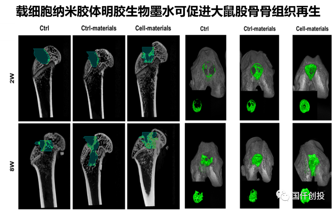 HN-GC生物墨水搭載骨髓基質(zhì)細(xì)胞MSCs打印得到支架材料,植入大鼠股骨缺損部位8周后,觀察到顯著促進(jìn)骨組織修復(fù)再生。