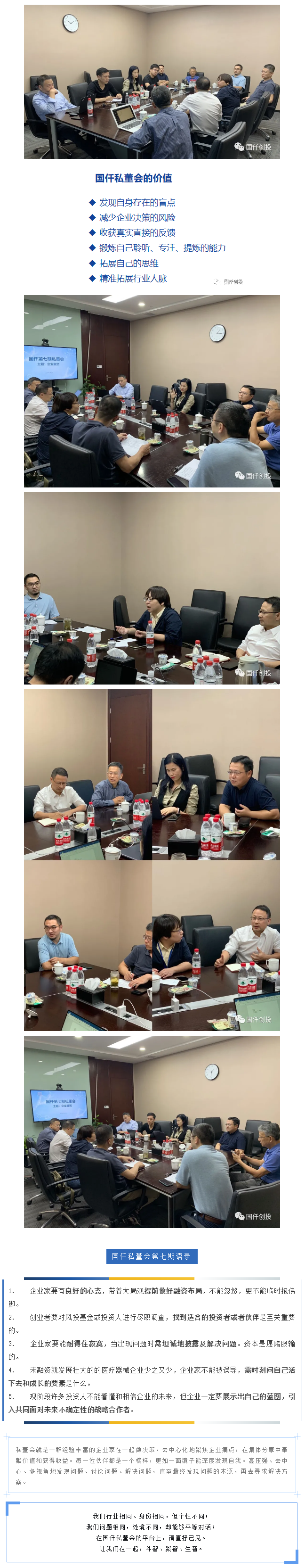 ??9月24日,國仟醫(yī)療科技(蘇州)有限公司聯(lián)合蘇州心擎醫(yī)療技術(shù)有限公司、蘇州睿仟科技有限公司、蘇州國科均豪生物科技有限公司、昂凱生命科技(蘇州)有限公司、蘇州晟諾醫(yī)療科技有限公司、蘇州西能捷科技發(fā)展有限公司、江蘇立泰律師事務(wù)所成功舉辦了第七期私董會。