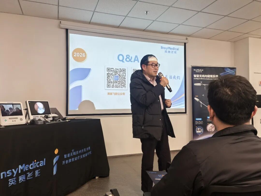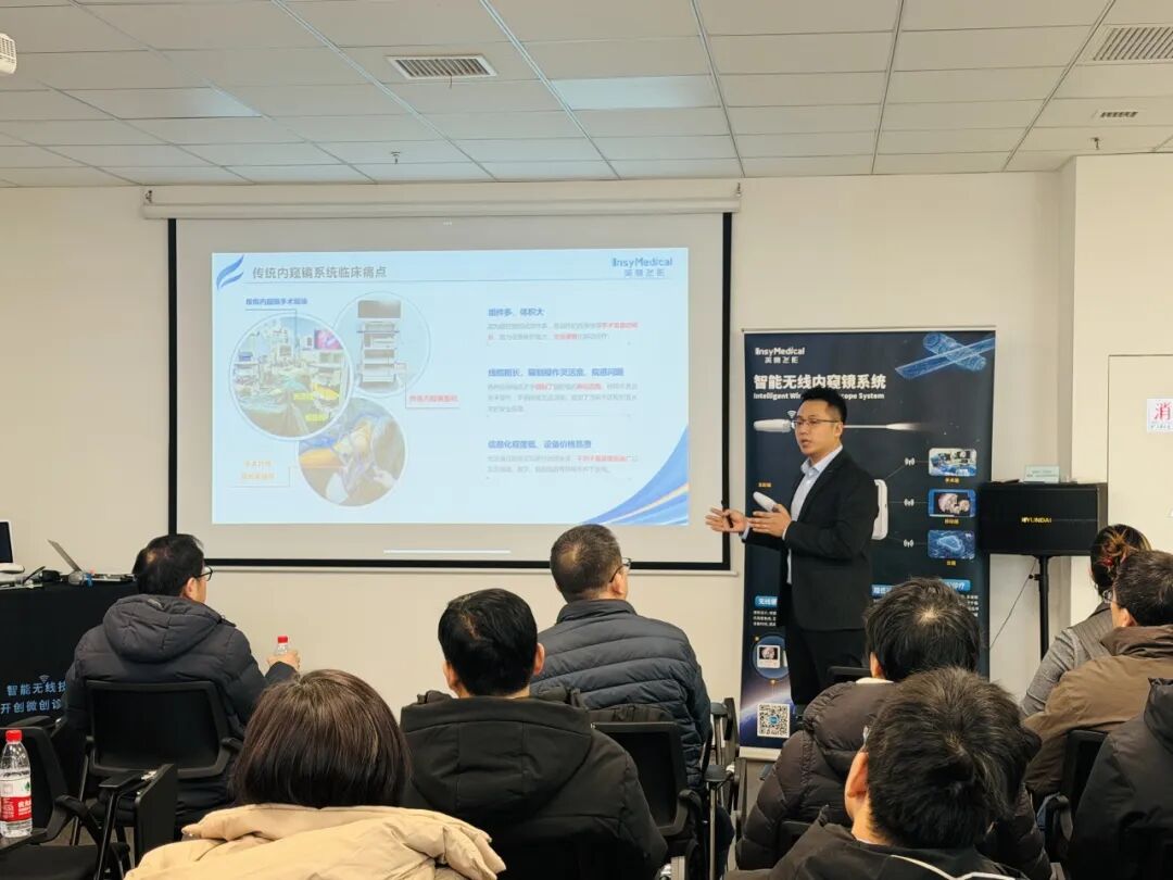 隨后英賽飛影團隊向在座臨床專家展示其創(chuàng)新產(chǎn)品。英賽飛影是一家由上海交通大學博士團隊成立的創(chuàng)新企業(yè),聚焦醫(yī)療微創(chuàng)外科無線高端器械的研發(fā)、生產(chǎn)及銷售。英賽飛影于2023年獲得國仟創(chuàng)投、蘇州美德科創(chuàng)投以及上海泰禮璟裕創(chuàng)投投資,落戶蘇州高新區(qū),并獲得蘇州高新區(qū)領軍,姑蘇領軍等各項榮譽稱號。其創(chuàng)新無線內(nèi)窺鏡產(chǎn)品于2025年獲批,在本次“醫(yī)企牽手贏”活動上正式向蘇州高新區(qū)臨床專家進行推介。
