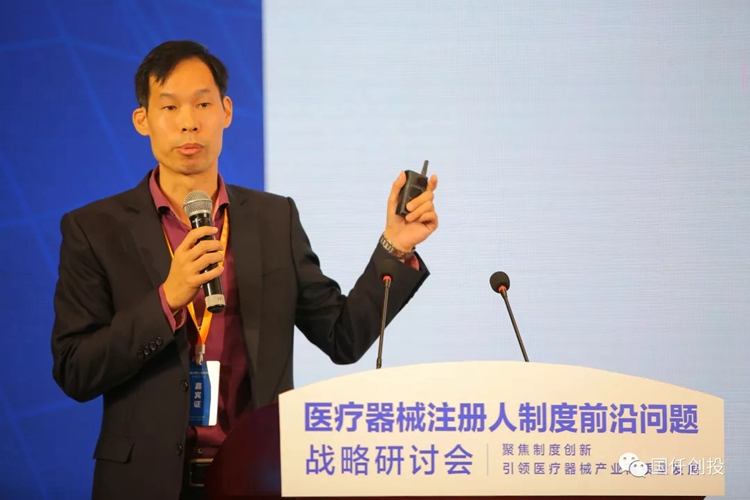 江蘇省藥品監(jiān)督管理局醫(yī)療器械生產(chǎn)監(jiān)管處處長張興華先生發(fā)表了題為《醫(yī)療器械注冊人制度下的監(jiān)管模式探討》的主題報(bào)告
