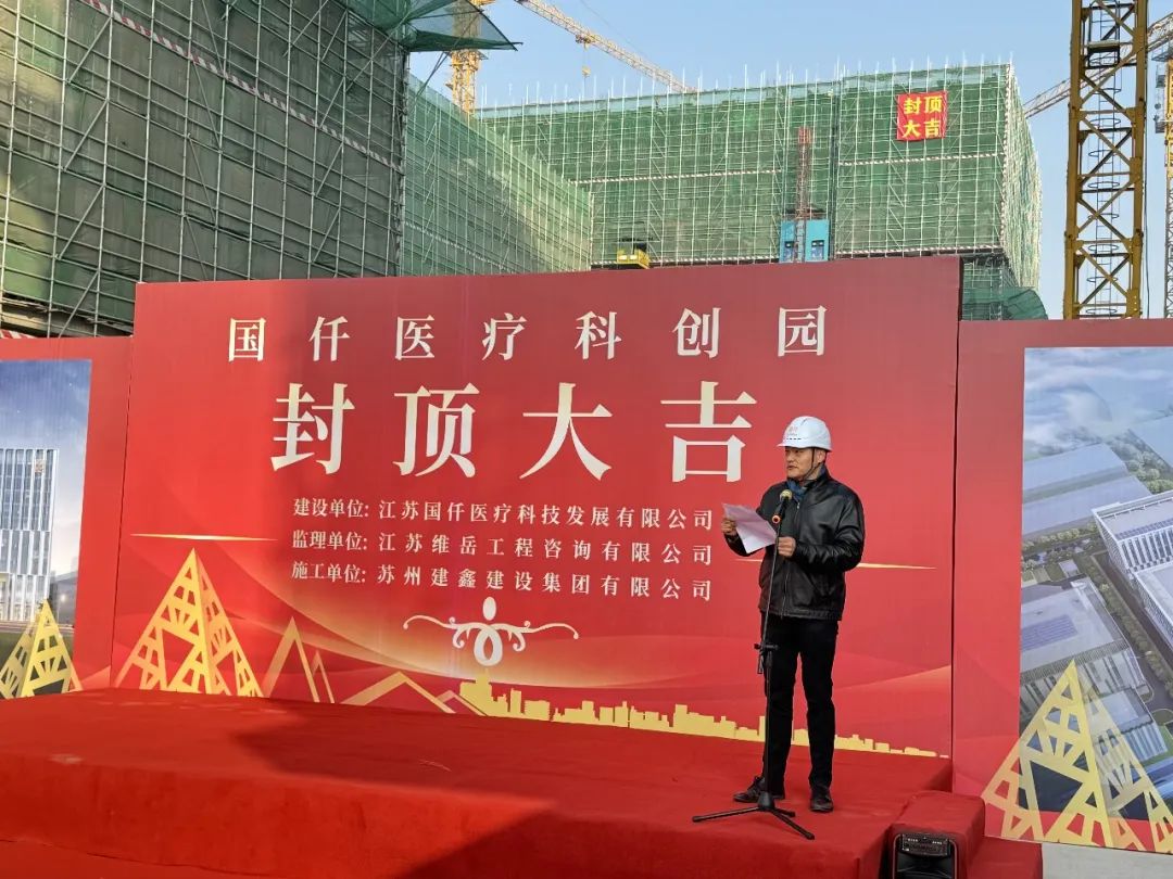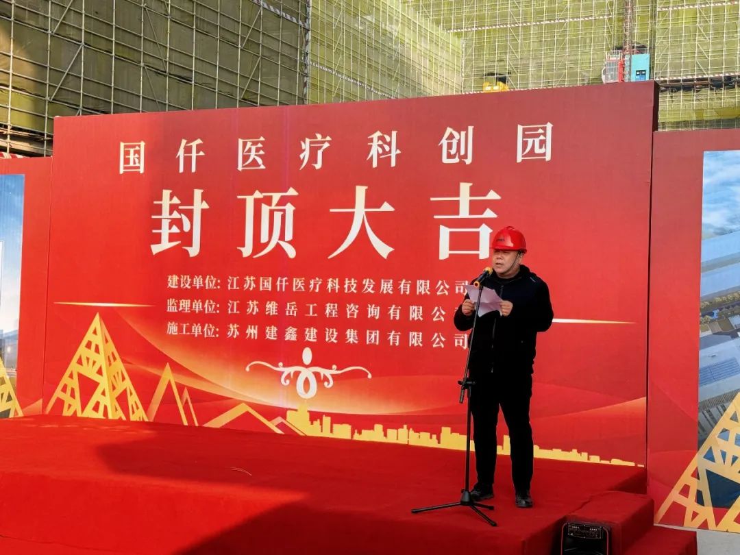 江蘇國仟醫(yī)療科技發(fā)展有限公司股東陳豪先生表示:在過去的日子里,正是這些建設(shè)者們不畏艱辛,勇往直前,以辛勤的汗水和卓越的智慧,才將這座現(xiàn)代化的產(chǎn)業(yè)園由藍圖變?yōu)楝F(xiàn)實。在此,我很榮幸能夠代表產(chǎn)業(yè)園運營方,向全體建設(shè)者致以最崇高的敬意和最誠摯的慰問!同時也向今天出席封頂?shù)涠Y的各位來賓、各位同仁表示最熱烈的歡迎和衷心的感謝。這座產(chǎn)業(yè)園不僅僅是鋼筋水泥的堆砌,更是我們國仟對醫(yī)療器械行業(yè)美好未來的憧憬和追求,它將在未來的歲月里,見證眾多優(yōu)秀企業(yè)的成長。國仟醫(yī)療科技創(chuàng)新產(chǎn)業(yè)園作為蘇州新區(qū)的標(biāo)志性產(chǎn)業(yè)園之一,更是代表著新區(qū)醫(yī)療器械行業(yè)發(fā)展的新高度!讓我們攜手并進共同創(chuàng)造更加美好的明天!