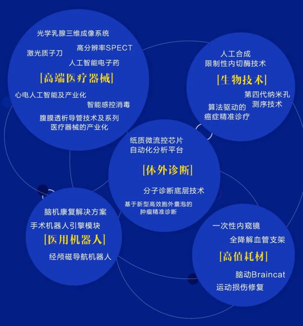 高端醫(yī)療器械:光學乳腺三維成像系統(tǒng)、高分辨率SPECT、激光質(zhì)子刀、人工智能電子藥、心電人工智能及產(chǎn)業(yè)化、智能感控消毒和腹膜透析導管技術及系列醫(yī)療器械的產(chǎn)業(yè)化;