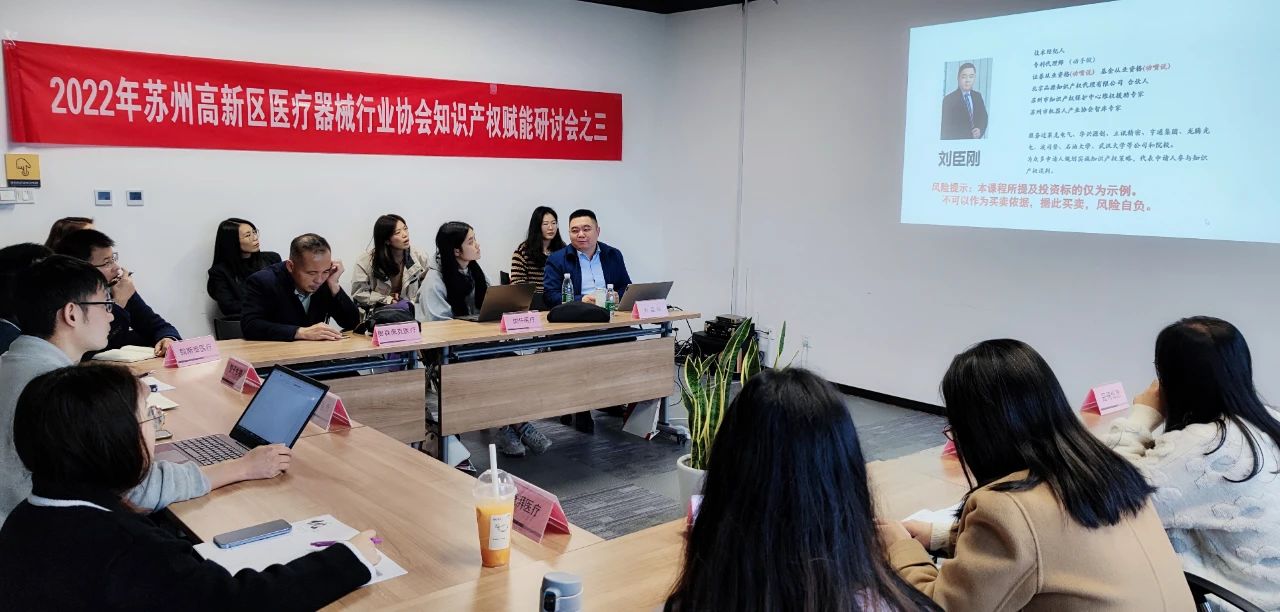 2022年11月22日,由蘇州高新區(qū)(虎丘區(qū))科技創(chuàng)新局、滸墅關(guān)科創(chuàng)局指導(dǎo),在北京品源專利代理有限公司蘇州分公司、蒲公英高新眾創(chuàng)空間、三色堇的支持下,蘇州高新區(qū)醫(yī)療器械行業(yè)協(xié)會(huì)舉辦醫(yī)療器械企業(yè)知識(shí)產(chǎn)權(quán)賦能“產(chǎn)品生命周期中的知識(shí)產(chǎn)權(quán)管理”研討會(huì)。