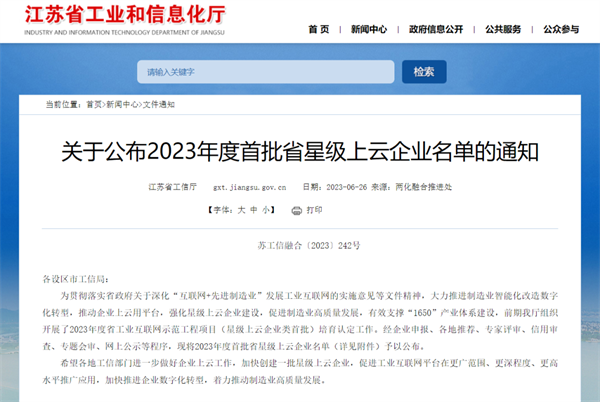 2023年度首批江蘇省星級(jí)上云企業(yè)